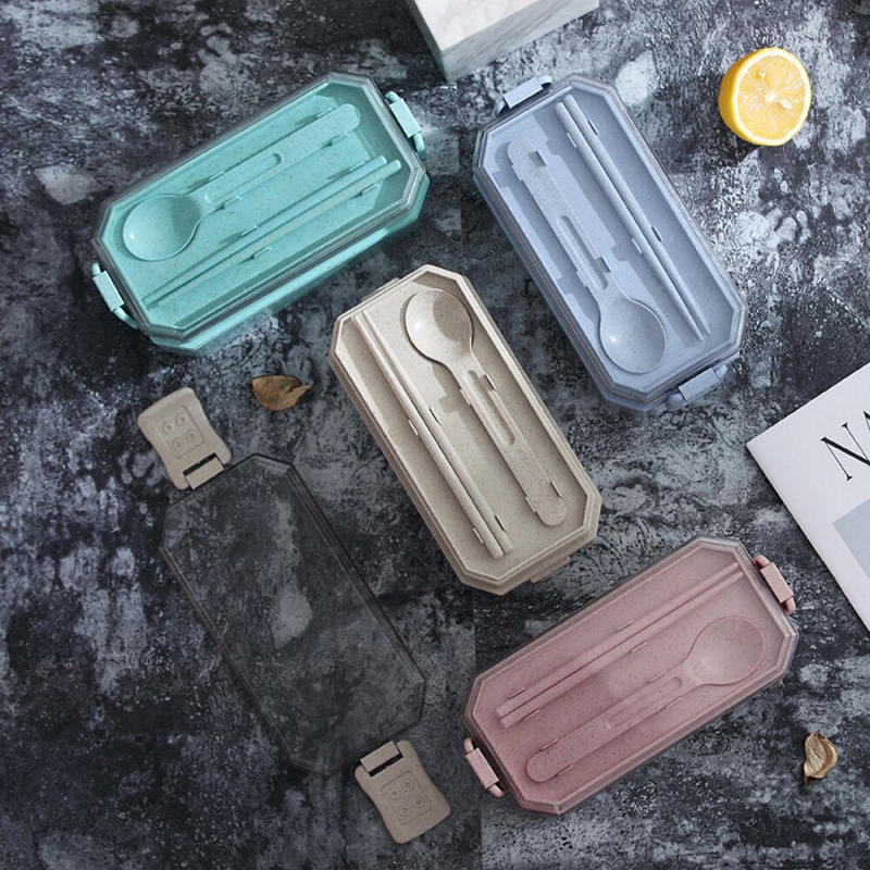 800Ml Lunch Box Wheat Straw Bento 2 Layer Food Storage Lunchboxes