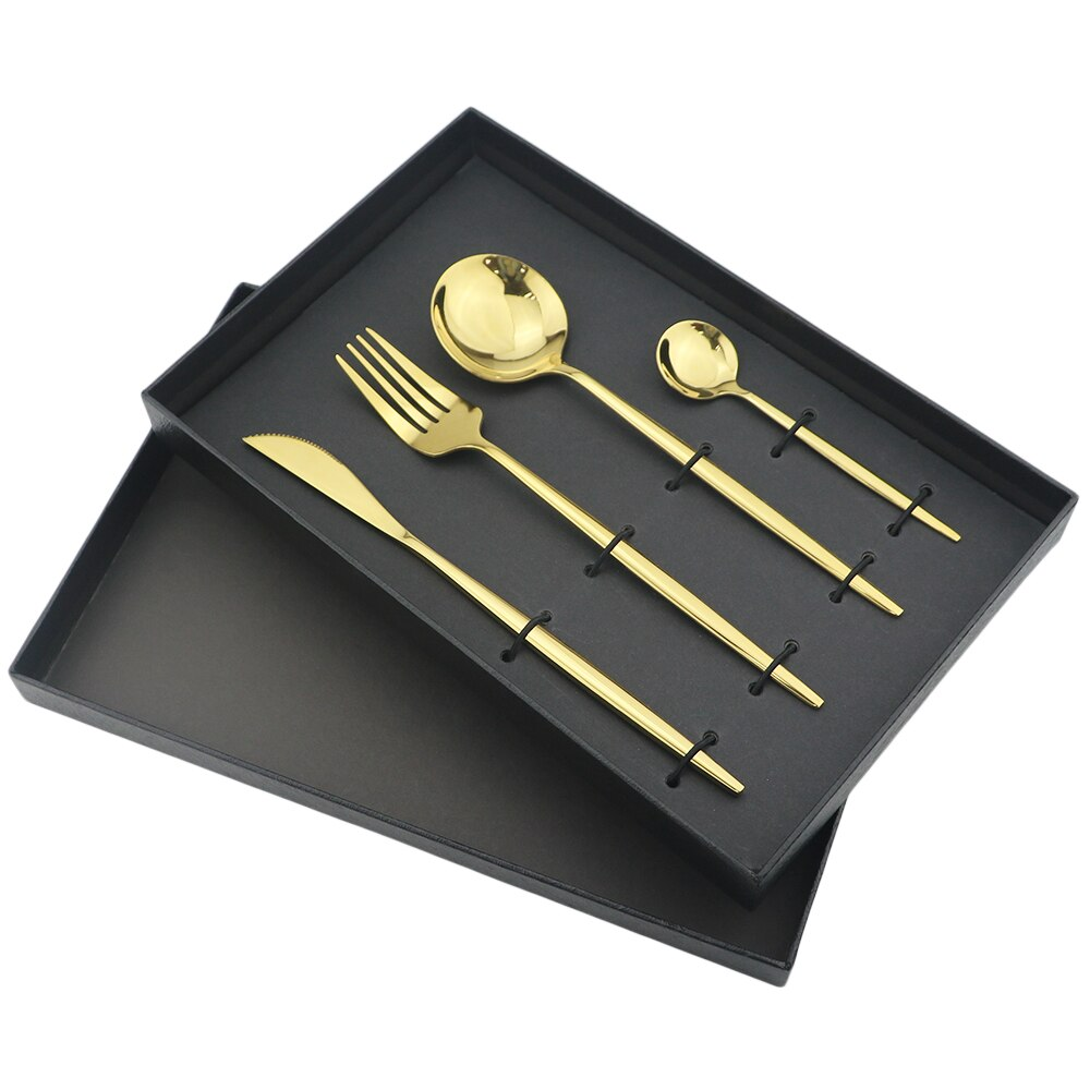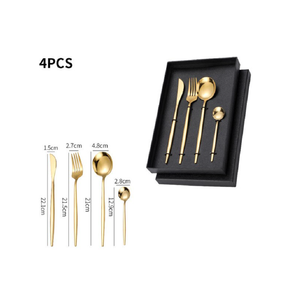 4Pcs Stainless Steel Tableware Cutlery Set Gold Knife Fork Spoon With Gift Box Cutlery Sets