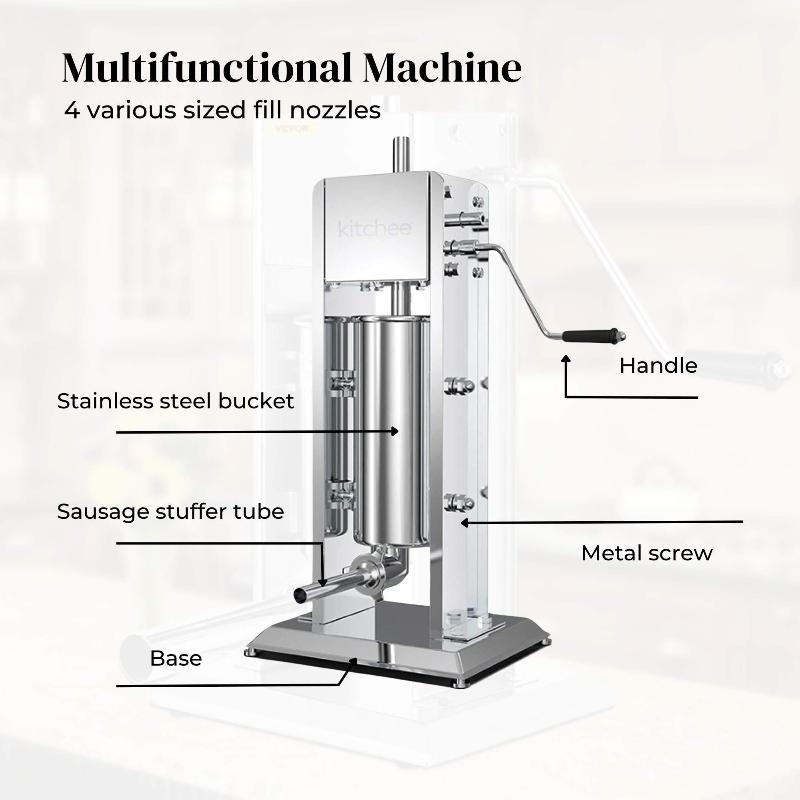 Kitchee 5L Manual Vertical Sausage Filler Stainless Stuffer Meat Press Machine Sausage Stuffers