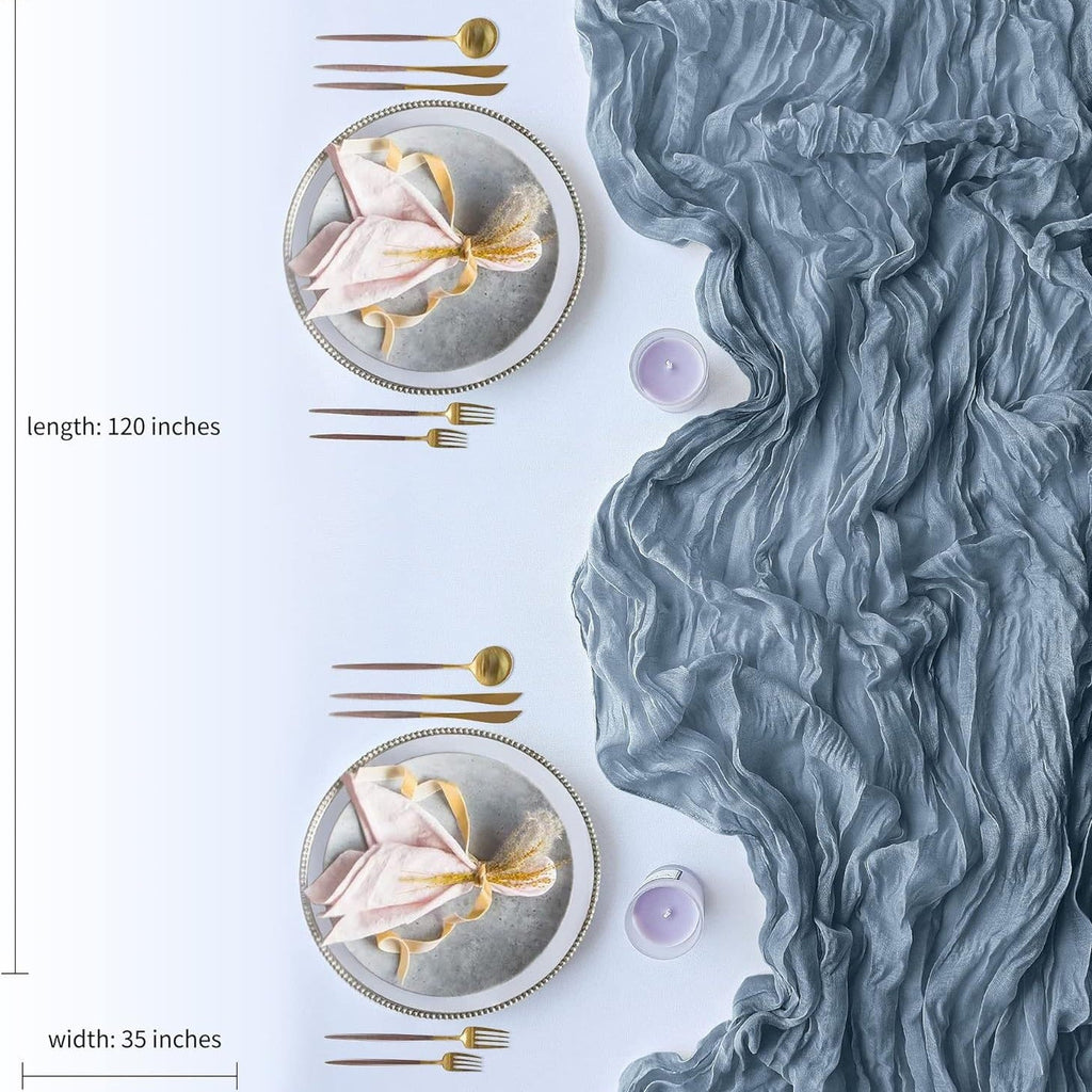 Enhance Your Dining Decor With This Charming 2-Pack Of Bohemian-Style Gauze Table Runners. Made From Lightweight Polyester Each Runner Features A Soft Wrinkled Texture That Adds A Rustic Yet Elegant Touch To Parties Birthdays Weddings Or Everyday Meals.
