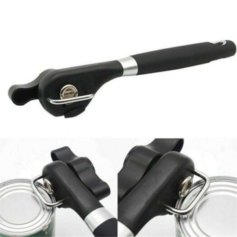 Manual Can Opener Tin Safety Cut Lid Smooth Edge Side Stainless Steel Black Can Openers