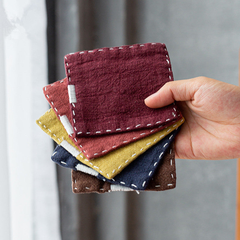 Chinese Style Linen Set Of 5 Hand Embroidered Tea Mats (9X9cm) Coasters