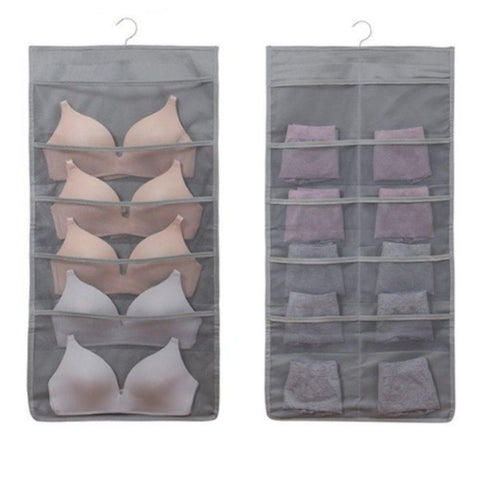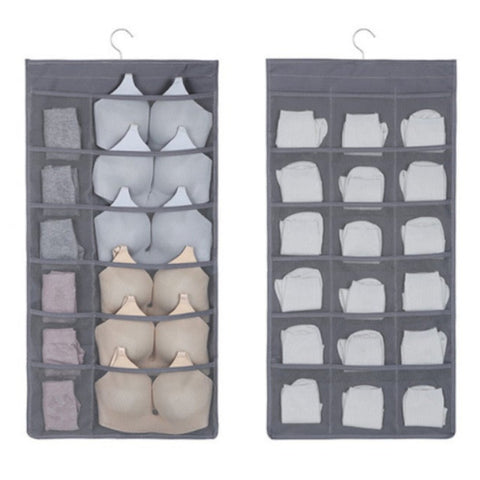 Hanging Storage Bag Grey Double Sided Multi Purpose 24 Grids Closet Organiser Hanging Closet Storage