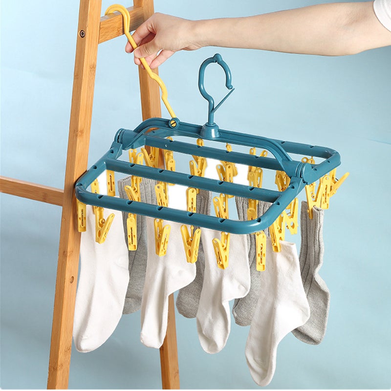 Clothes Hangers 32 Clips Foldable Clothes Drying Rack Windproof Laundry Dryer Hanger