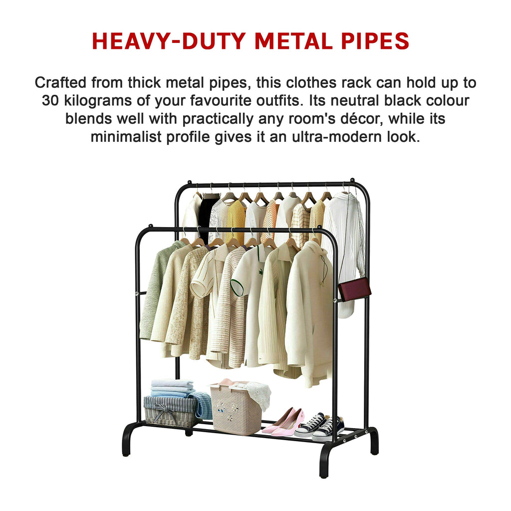 Heavy Metal Double Clothes Rail Hanging Rack Garment Display Stand Storage Shelf Garment Racks