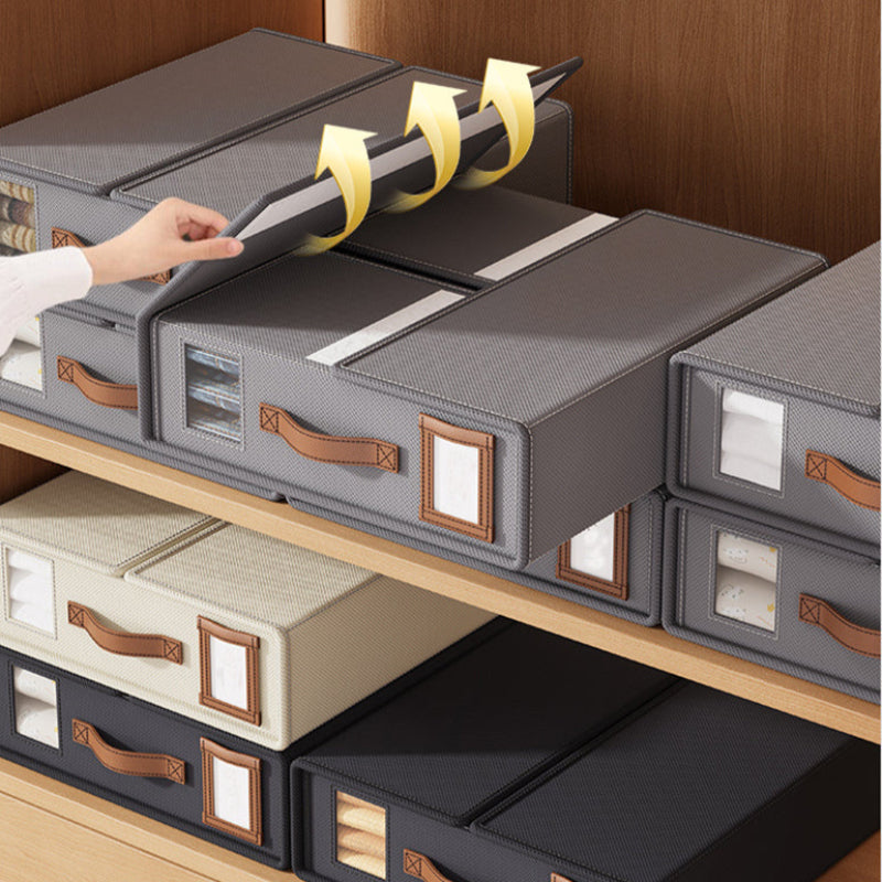 Elosung 2 Pcs Beige Non Woven Fabric Storage Box With Lid Transparent Moisture Proo Storage Boxes