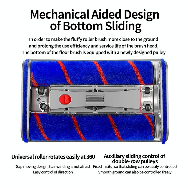 Universal Double Roller Floor Brush For Dyson V7 / V8 V10 V11 Vacuum Cleaner Parts