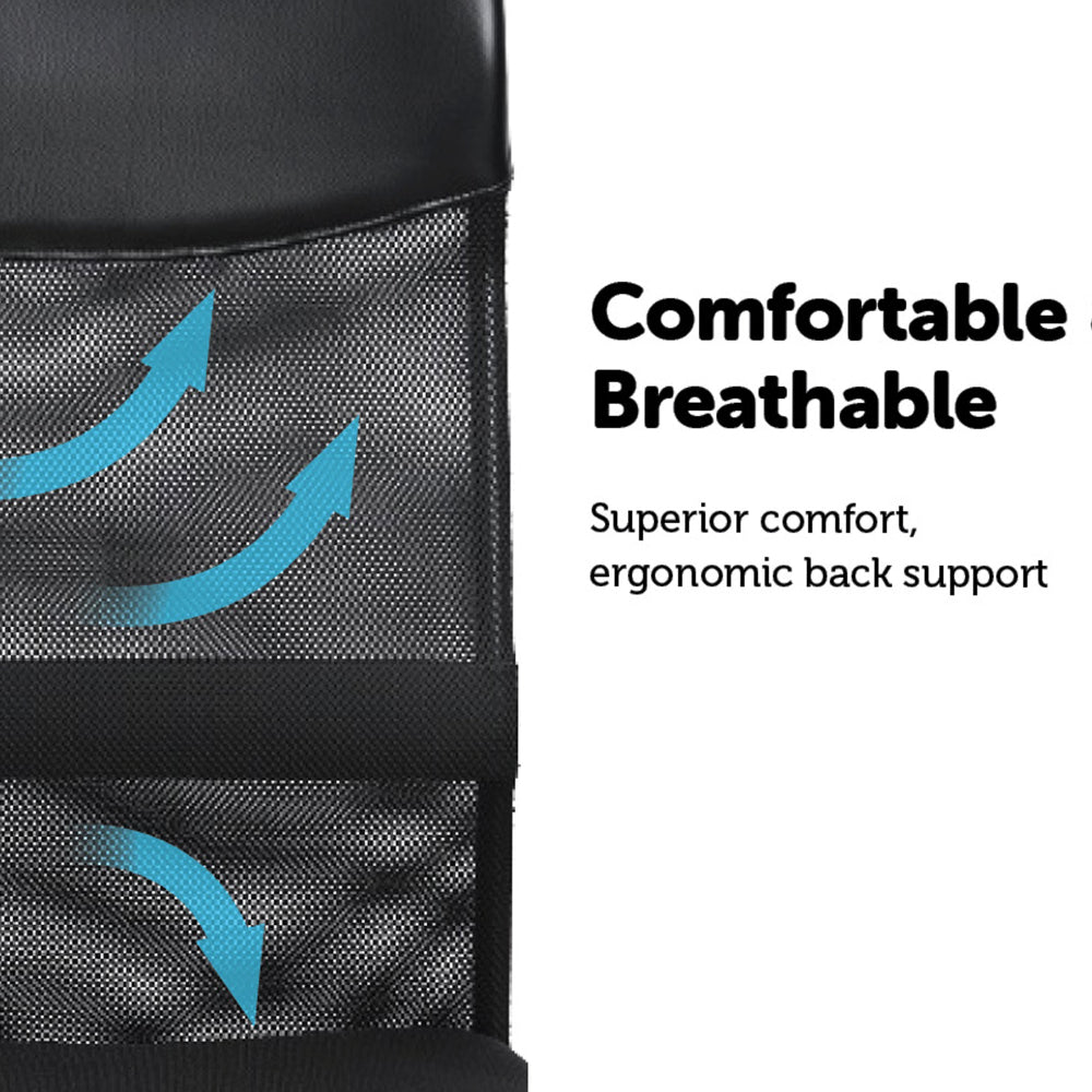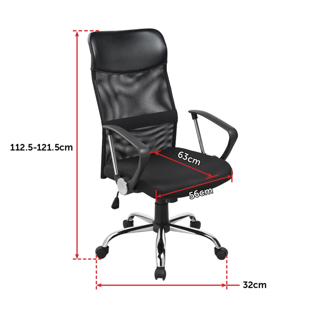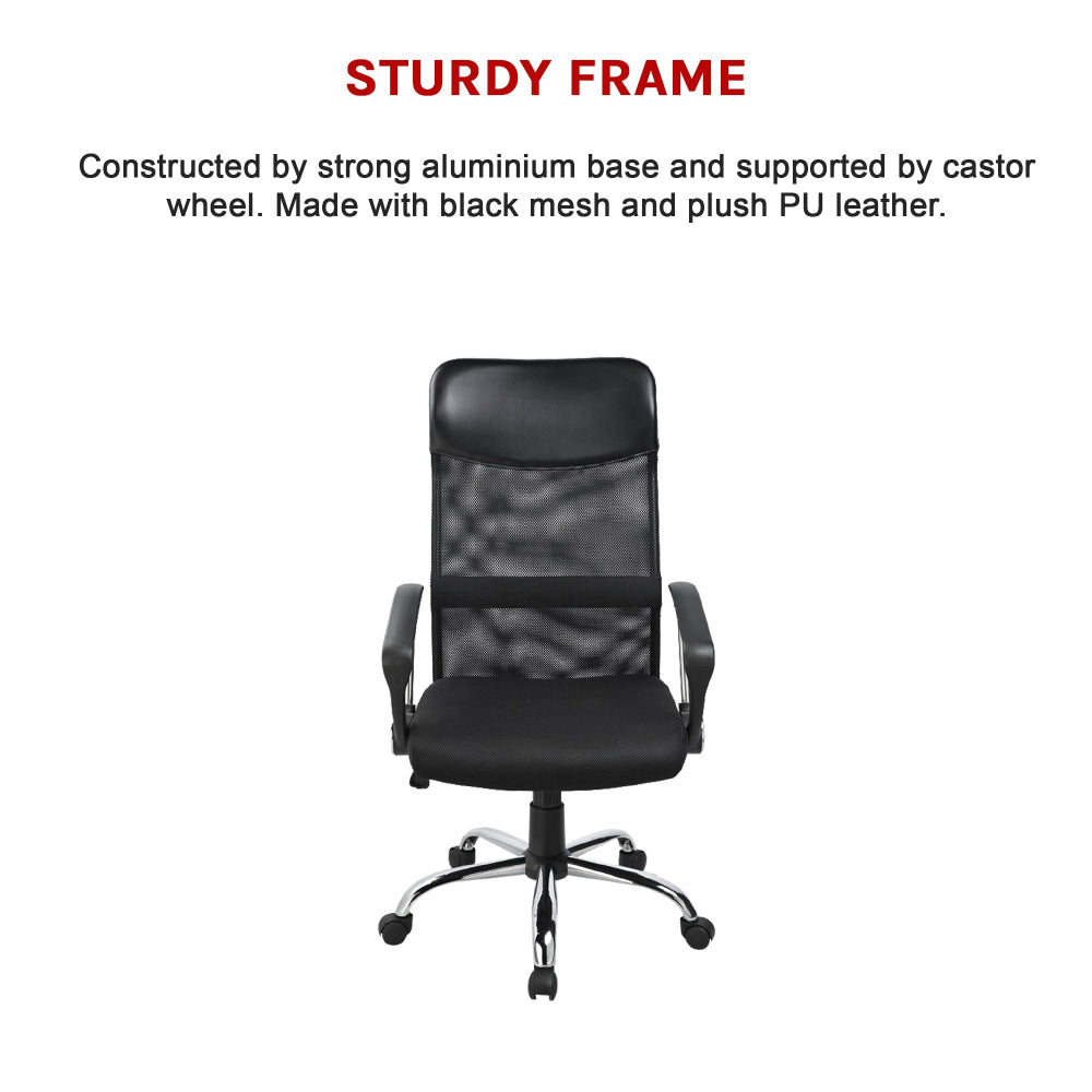 The Chair Is Constructed With Plush Pu Leather As Well As A Black Mesh For Superior Comfort And No-Fuss Maintenance. A Convenient Gaslift Makes Height Easily From 112.5Cm To 121.5Cm. And A Handsome Chrome Base With 5 Nylon Castor Wheels Provide An Easy Way To Rotate And Wheel Around.