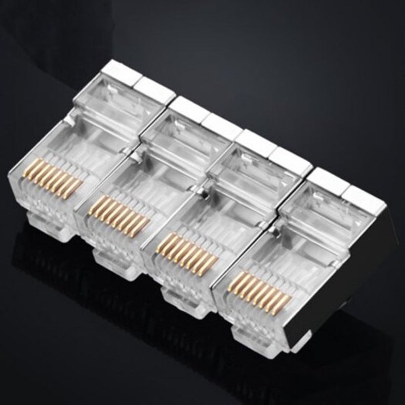 8P8c Modular Ethernet Cable Head Plug Gold Plated Cat 6 Crimp Network Rj45 Connector Cat6 10Pcs Silver Plugs Jacks & Wall Plates