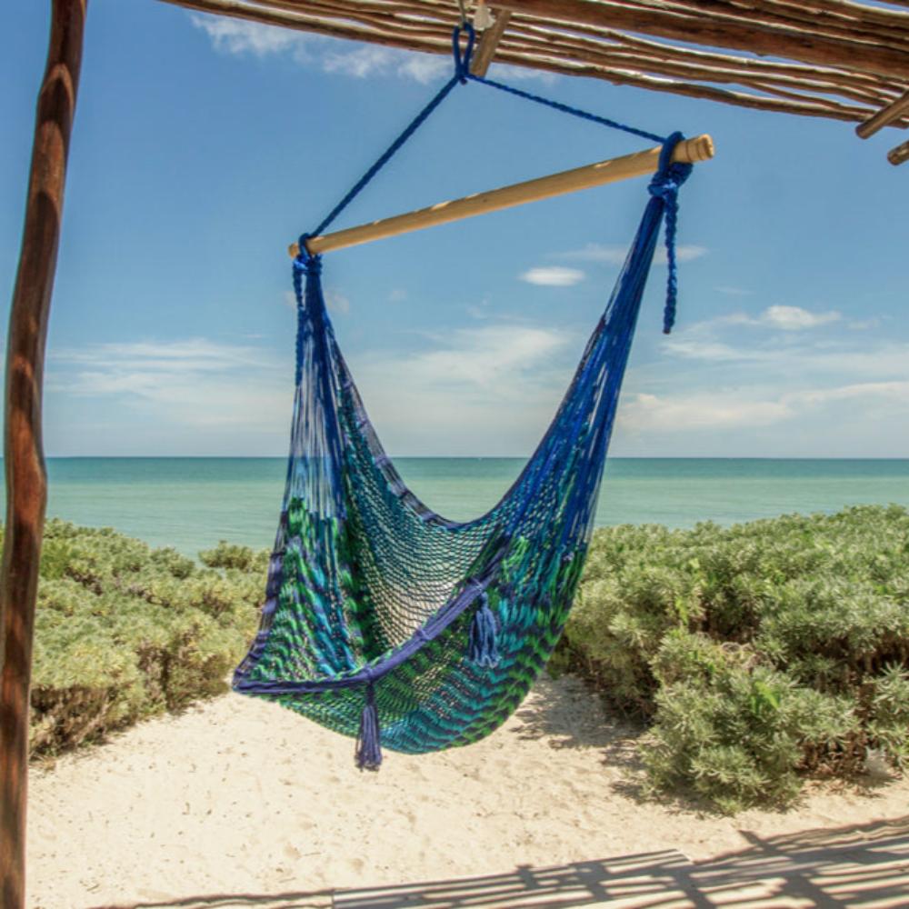 Mayan Legacy Extra Large Outdoor Cotton Mexican Hammock Chair In Caribe Colour Hammocks
