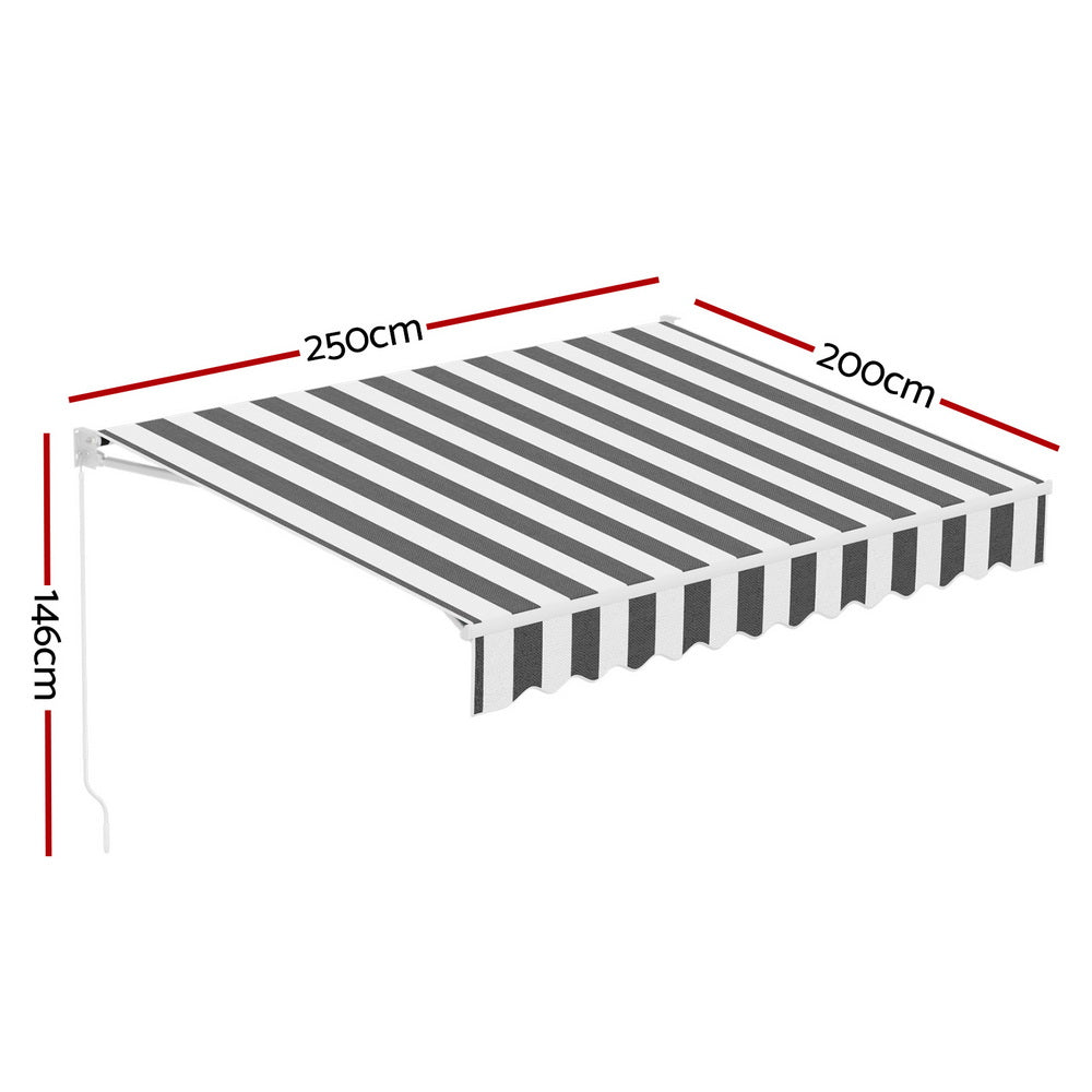 Instahut Retractable Folding Arm Awning Manual Sunshade 2.5Mx2m Grey White Awning & Canopy Parts
