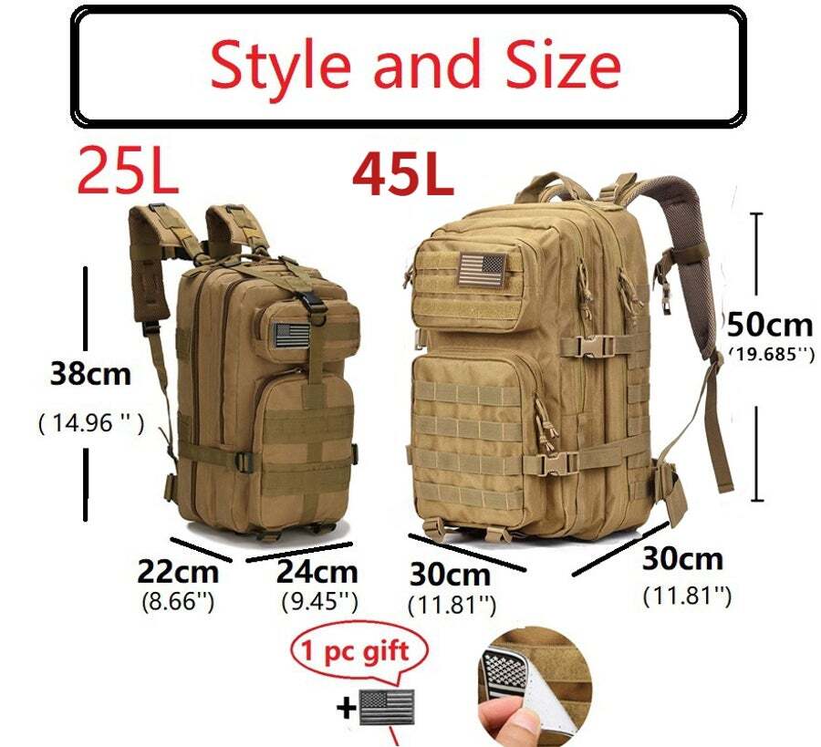 • Military Tactical backpack size: