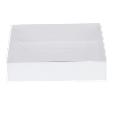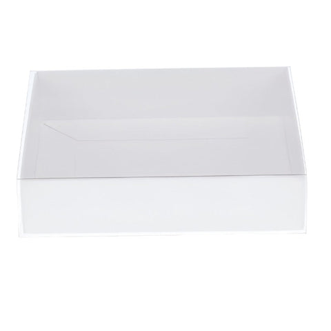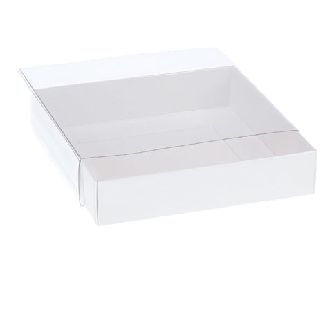 My Decorations 100 Pack Of White Card Box Clear Slide On Lid 25 X 6Cm Large Beauty Product Gift Giving Hamper Tray Merch Fashion Cake Sweets Xmas Gift
