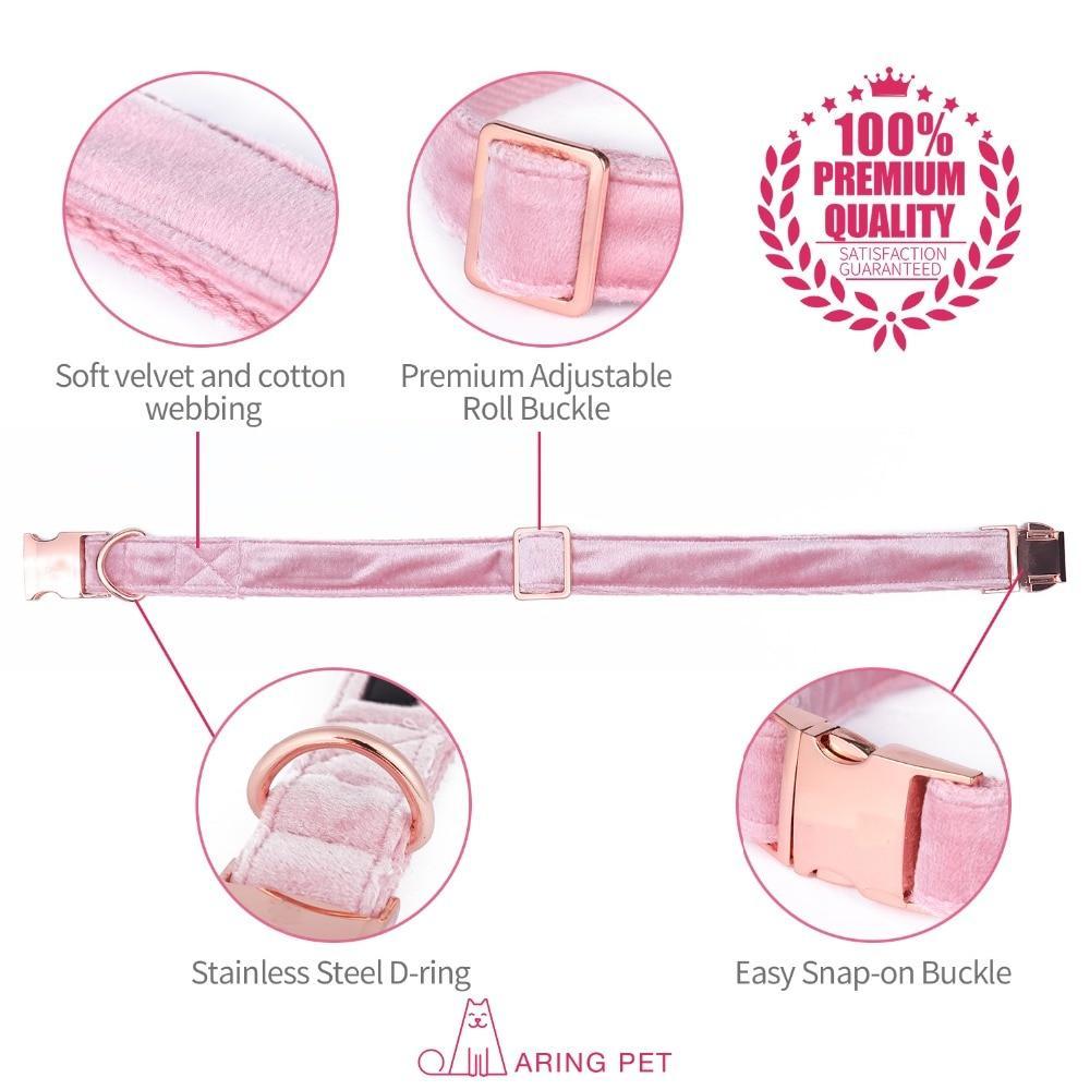 Pink Candy Velvet Dog Collar Leash Set Leads & Head Collars
