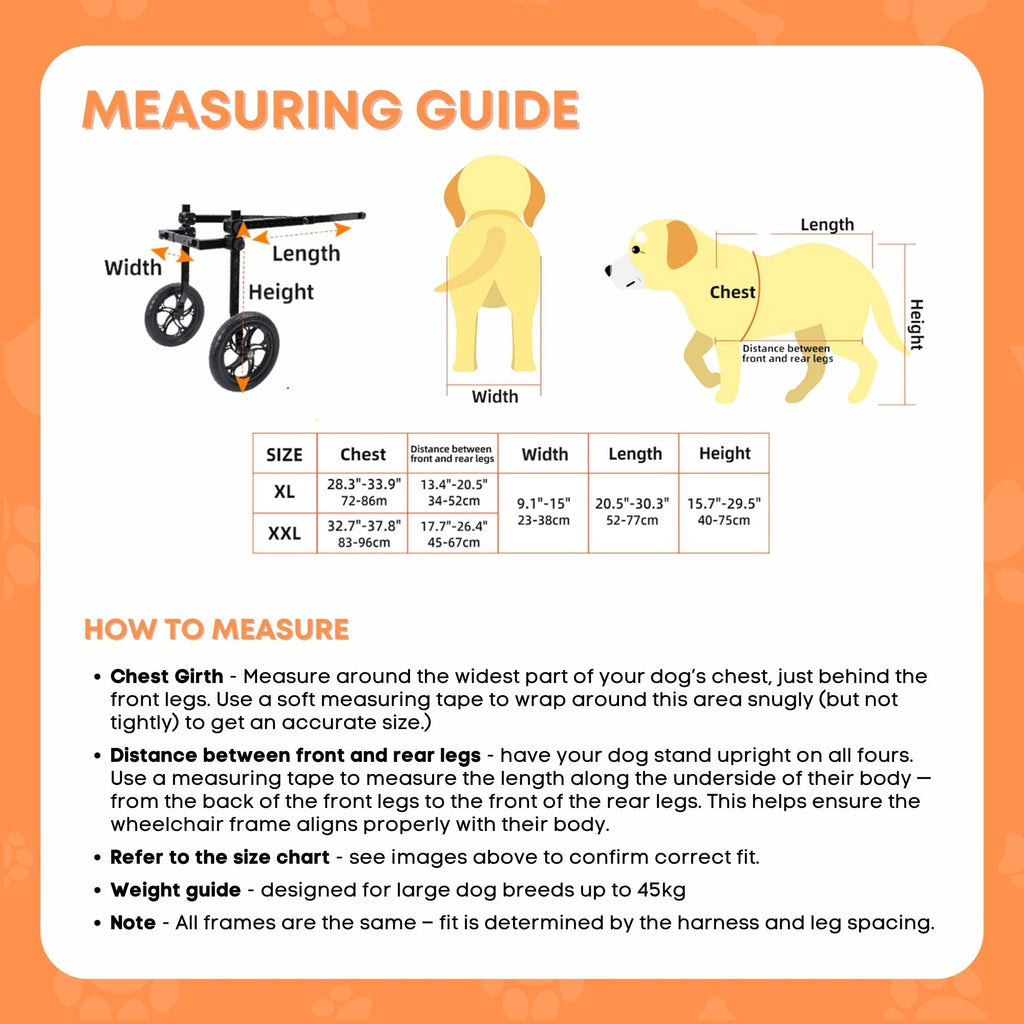 Sizing Note: This Wheelchair Is Specifically Designed For Large Dog Breeds Up To 45Kg. The Wheelchair Frame Remains The Same Across All Options — What Changes Is The Harness Size Which Must Match Your Dog’S Body Measurements.