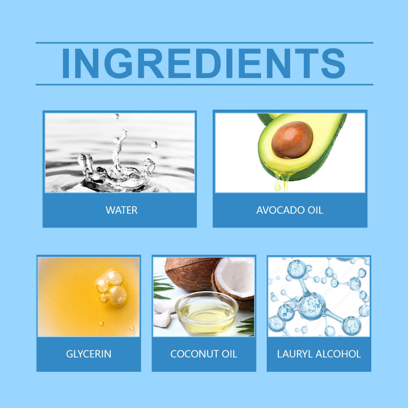 • Main Ingredients: Glycerin Lauryl Alcohol Avocado Oil