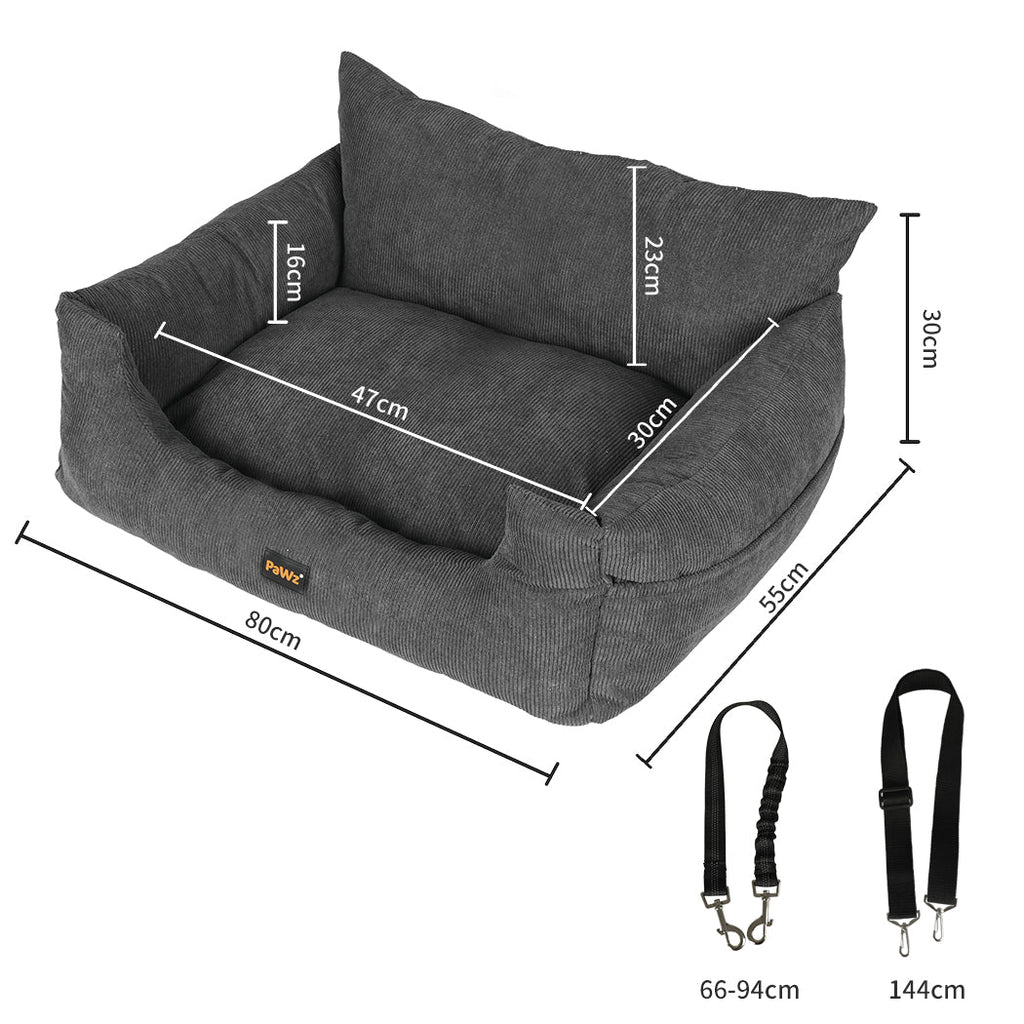 Li>2 X Side Pockets Li> Safety Belt Li>Removable Cover Li>Machine Washable (Cover Only) Li>car seat And Pet Bed Li>Raised Bolster Rim For Added Comfort