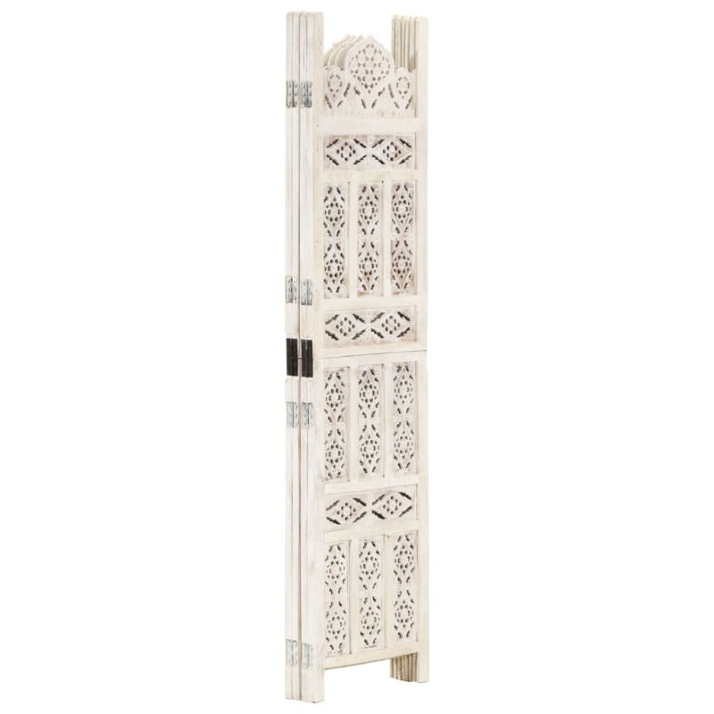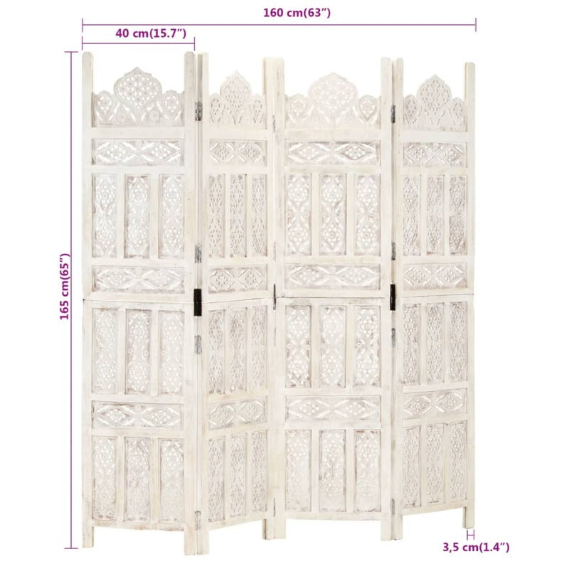 Screens & Room Dividers Hand Carved 4 Panel Room Divider White 160X165 Cm Solid Mango Wood