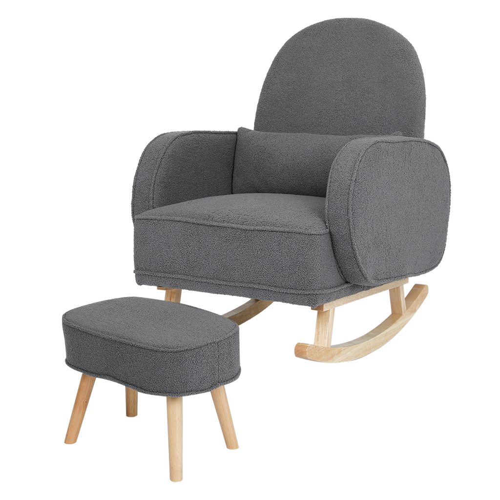 Levede Fleece Rocking Chair With Footstool Sofas Armchairs & Couches