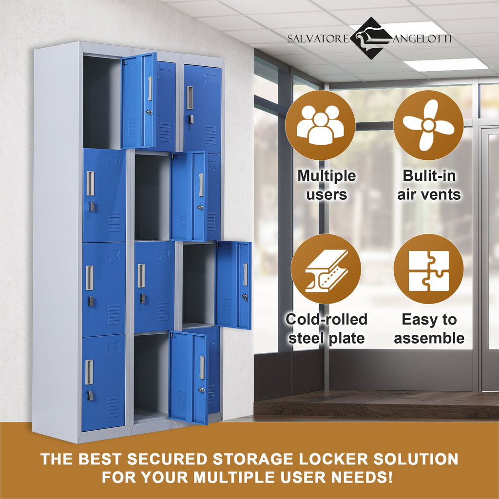 Whether You're Outfitting A Gym School Spa Office Or Other Shared Space This 12-Door Locker Unit Offers The Ideal Combination Of Security Durability And Convenience. Featuring 12 Compartments In A 3 X 4 Grid Each Locker Provides Generous Room For Personal Belongings And Can Hold Up To 30 Kg. With Padlock-Operated Locks (Padlocks Not Included) Users Can Bring Their Own Padlocks For Keyless Security That’S Easy To Manage.