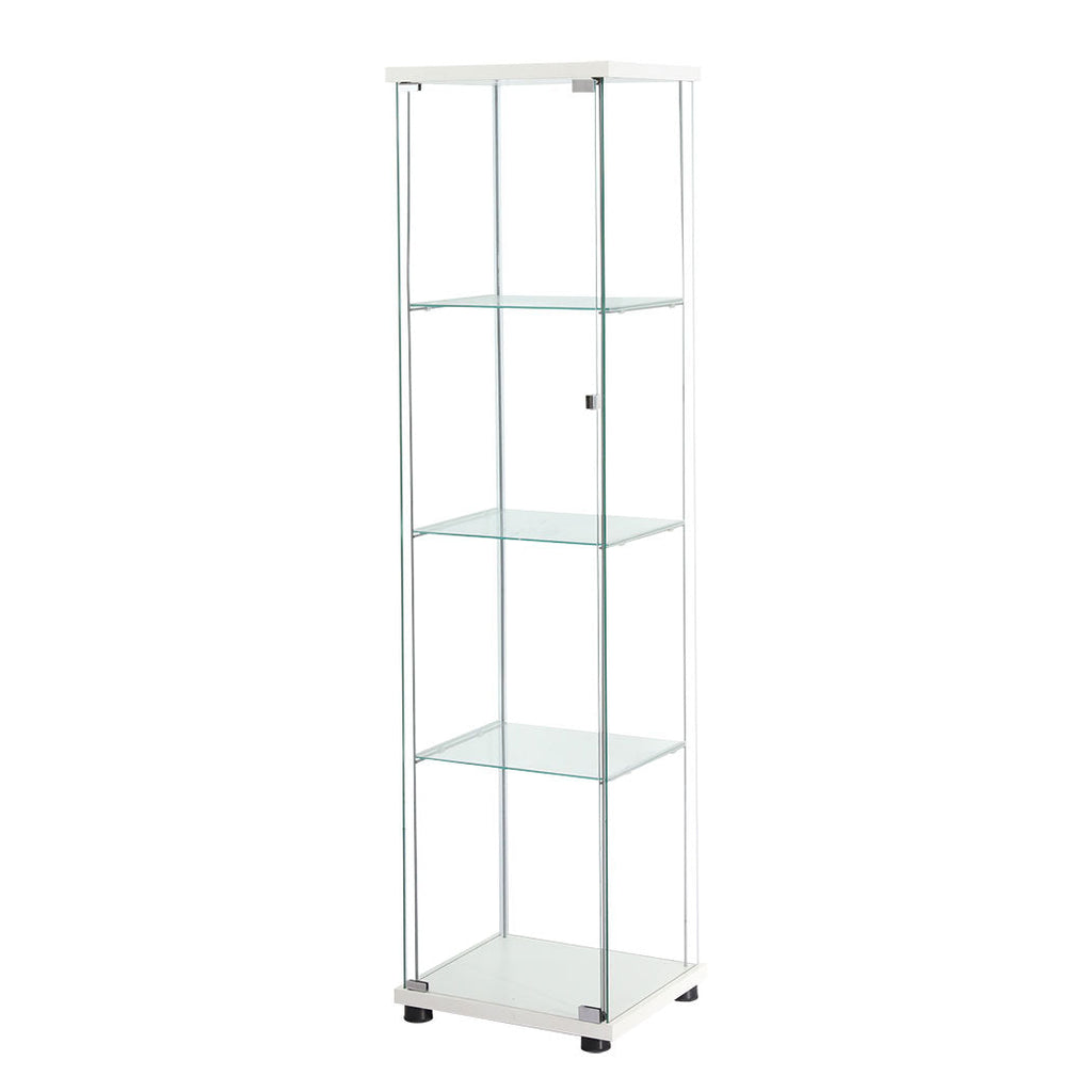 Designed with four clear tempered glass panels this cabinet delivers maximum visibility from every angle while the crisp white finish complements any modern interior. With a spacious 4-tier layout and excellent weight capacity it offers both style and storage in one elegant solution.