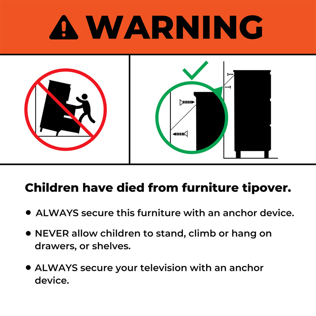 • ALWAYS anchor the furniture to the wall using the included Safety device.