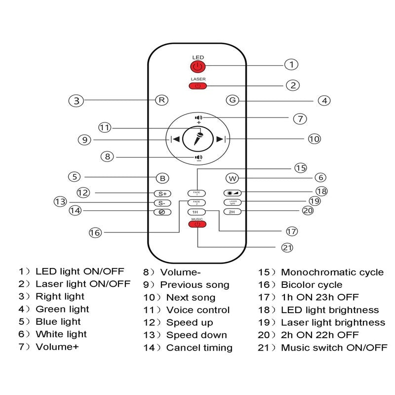 • 21 Fantastic Lighting Modes: Project a realistic starry night sky with four soothing color options (Blue Red Green White) and create up to 21 lighting modes.