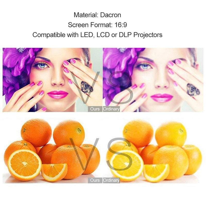 60 Hd 169 White Inch Diagonal Projection Foldable Theatre For Wall Indoors Outdoors Projector Screens