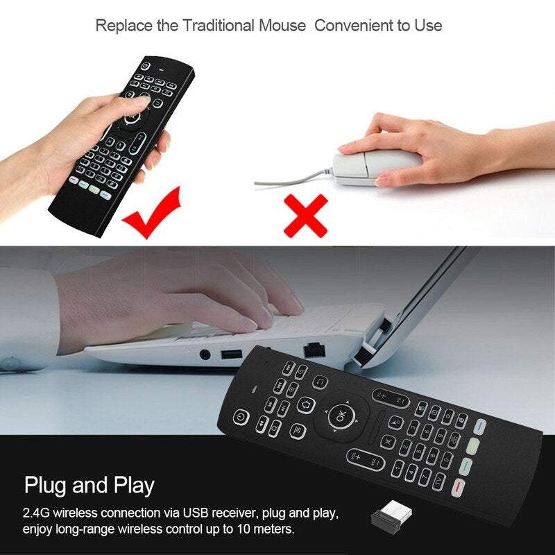 5 In 1 Super Combo: Air Mouse + Wireless Keyboard + Ir Learning Remote Control + Motion Sensing Game + Backlight.