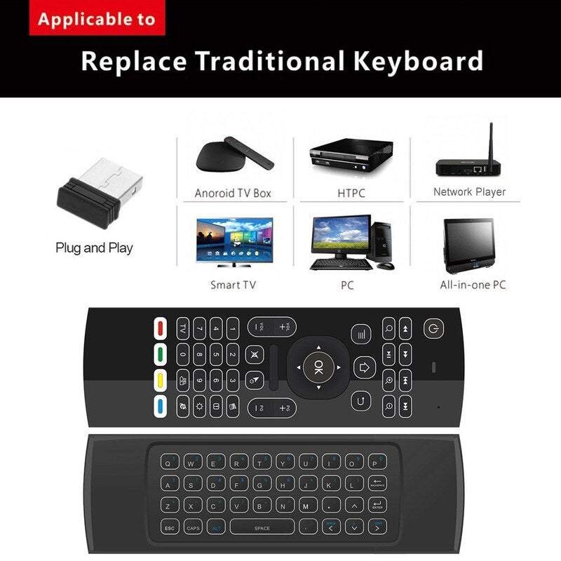 Tv 2.4G Backlit Air Mouse Wireless Keyboard Mini Pc Smart Android Box Projector 6 Axis Somatosensory Motion Sensing Game Infrared Learning Button Remo