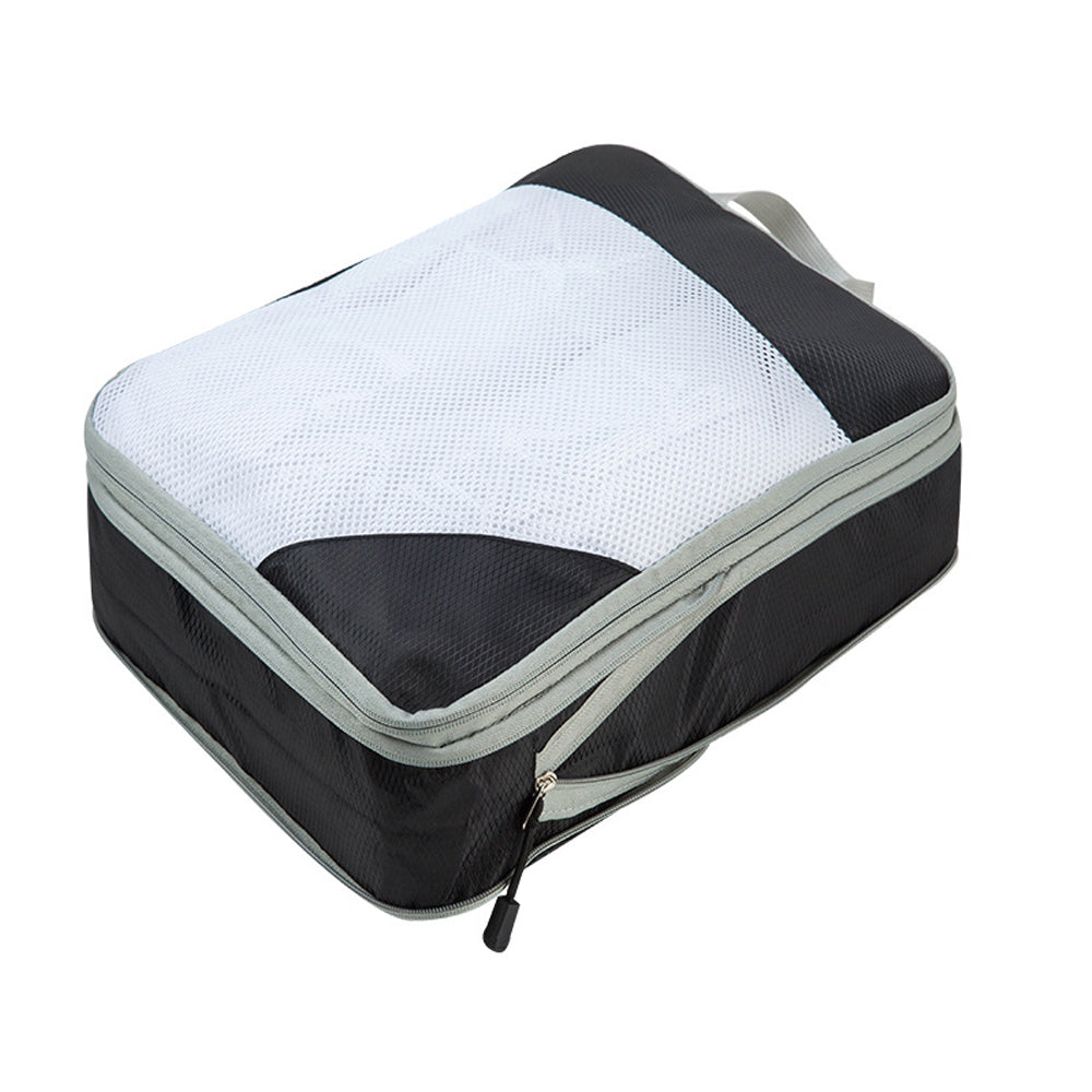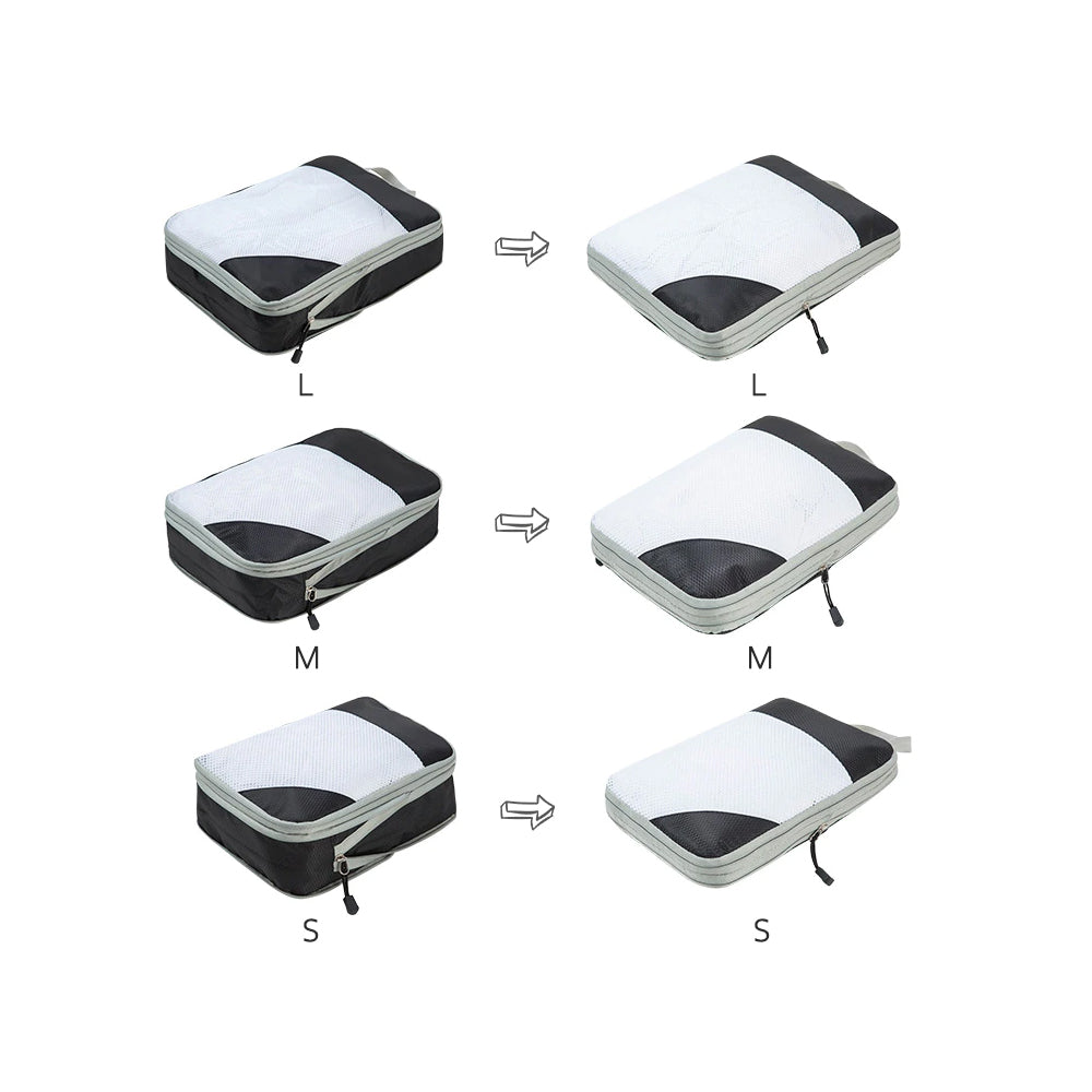 - Save up to 60% luggage space by compressing the organizer with the external zipper.
