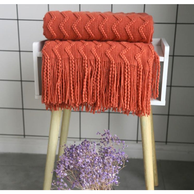 125Cm X 200Cm Warm Cozy Knitted Throw Blanket Orange Blankets