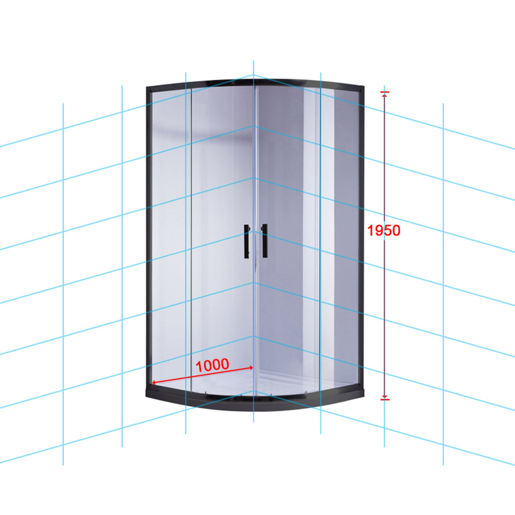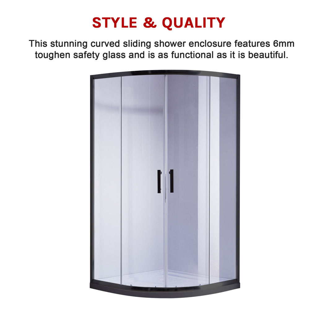 100 X 100Cm Black Rounded Sliding 6Mm Curved Shower Screen With White Base Shower Enclosures