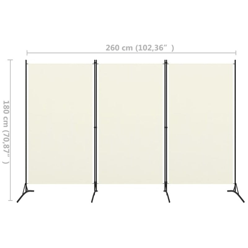 3 Panel Room Divider Cream 260X180 Cm Fabric Screens & Room Dividers
