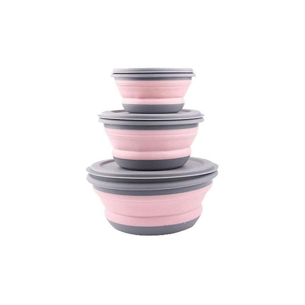 3 Pieces Collapsible With Lids Design Spacesaving Easy To Carry Bowls