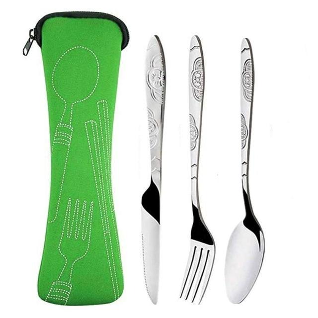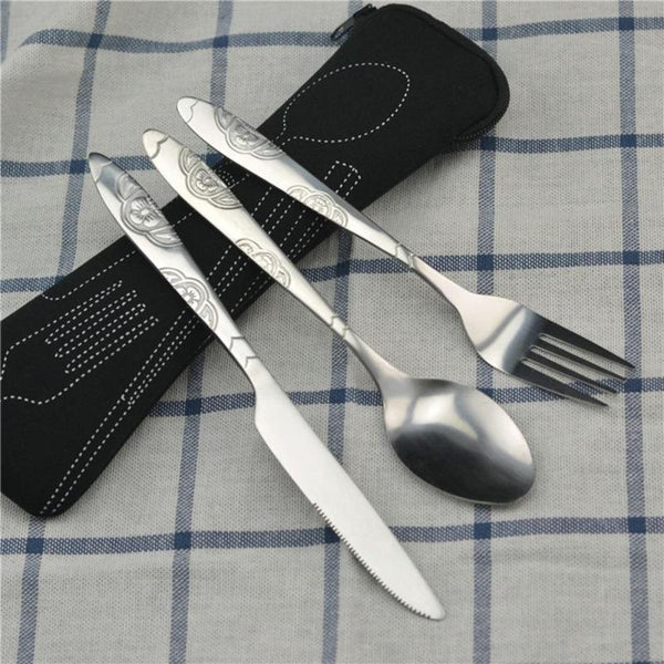 3Pcs / Set Camping Travel Stainless Steel Cutlery With Bag Cutlery Sets