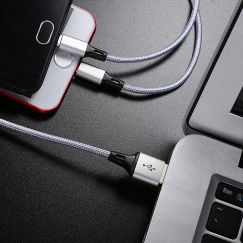 3 In 1 Usb Cable Phone Charge Nylon Braided Universal Charging Data Cord Cables & Adapters