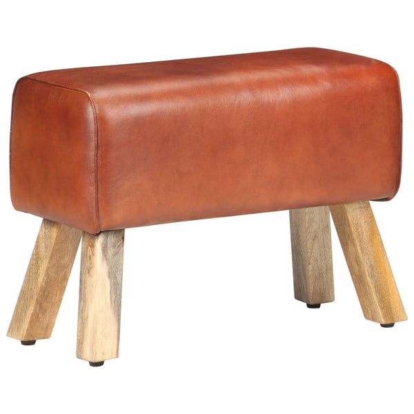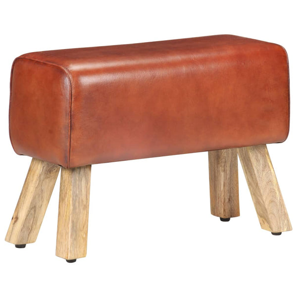 Gym Bok Bench 58 Cm Brown Real Leather And Solid Mango Wood Benches