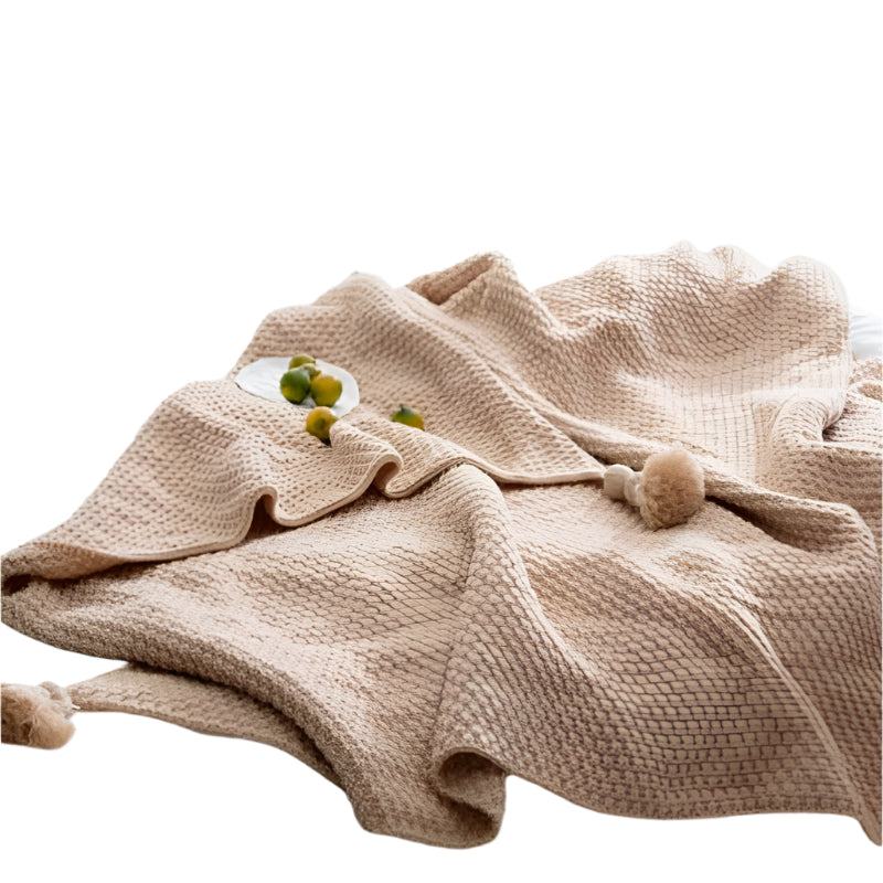 • 1 X Nordic Fringed Knit Ball Blanket Wool Blanket Office Air Conditioning Lunch Break Blanket Shawl Blanket Sofa Leisure Blanket Blanket