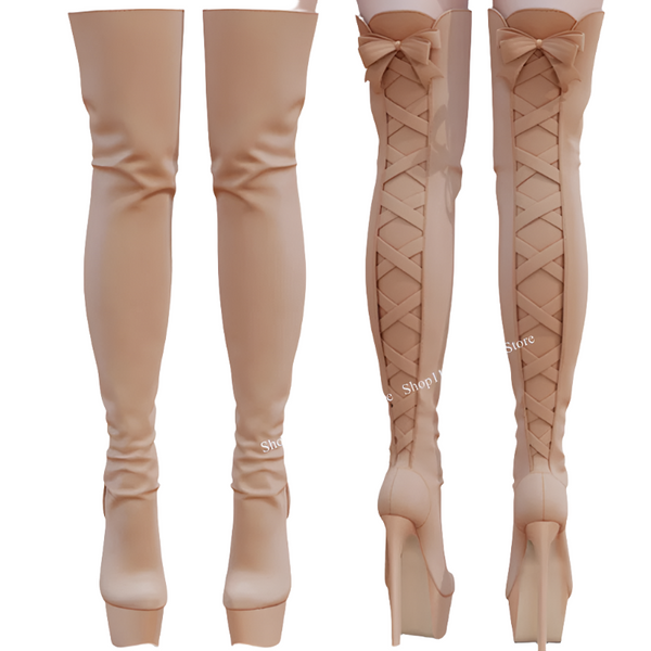 - 1 X Black Lace Up Platform Over Knee High Boots Thin High Heel Winter 2024 Woman Shoes