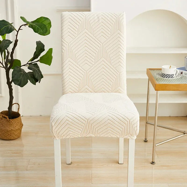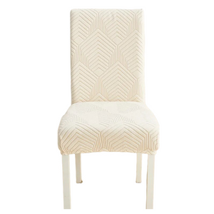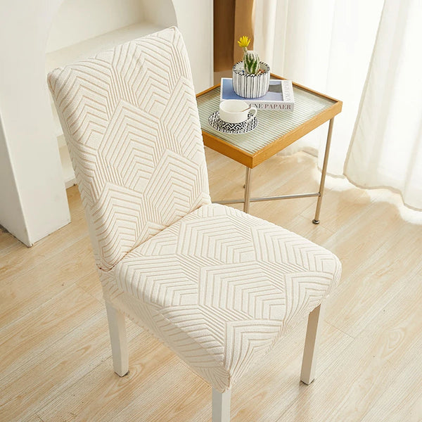 Chair Cover Beige Geometric Lines Design Elastic Material For Dining Room Kitchen Chair Covers