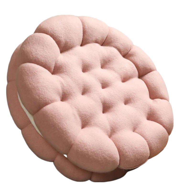 - 1 X Plush Pillow Pink Round Double Biscuit Shape Stuffed Soft Pillow Seat Cushion