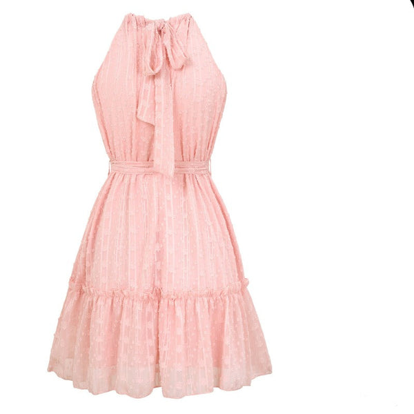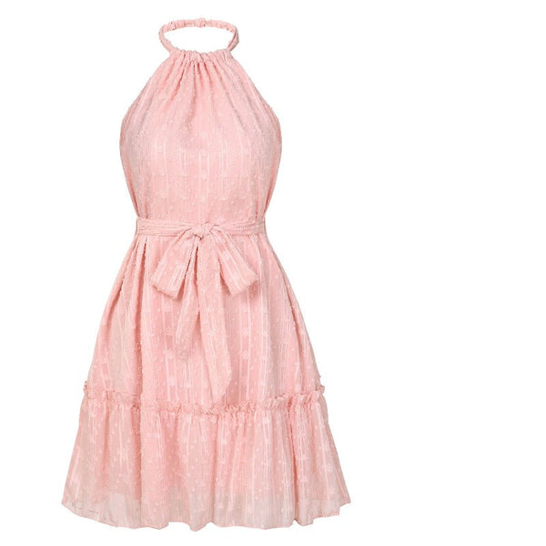 Solid Colour Halterneck Dress Casual Lace Tie Waist Women's Clothing Vacation Beach Dresses