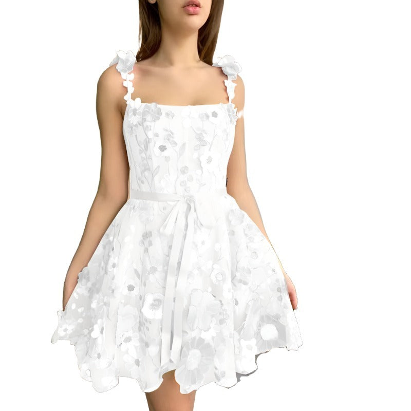 • 1 x Three Dimensional Flower Embroidery Dress A Line Suspender Dresses for Women Clothing