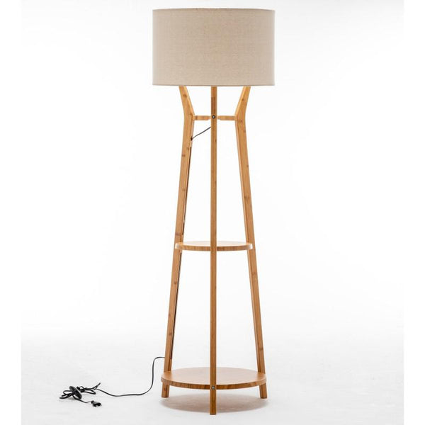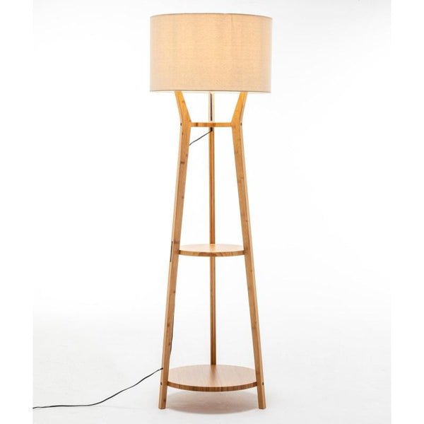 Elevate The Ambiance Of Your Living Space With The 168Cm Large Bamboo Tripod Floor Lamp. This Modern Floor Lamp Combines Functionality With Stylish Design Making It A Perfect Addition To Any Contemporary Home. The Lamp Features A Beautifully Crafted Bamboo Base And A Sleek Linen Shade Providing A Natural Yet Sophisticated Look. With Built-In Shelves This Lamp Not Only Illuminates Your Room But Also Offers Convenient Storage For Your Favorite Decor Pieces Or Books.