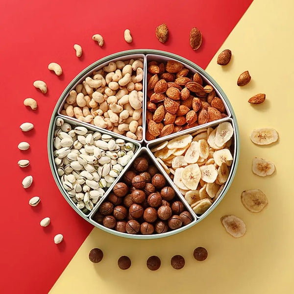 - 1 X Food Container Green Round Grid Flower Shape Fruit Plate