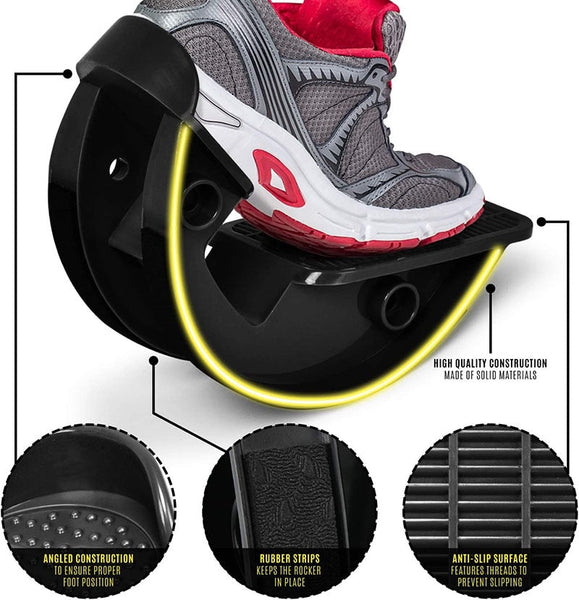 • aFIT FOR ALL FEETa‘ COVVY foot rocker has an open design and allows a comfortable fit on a wide range of foot sizes(Up to shoe size 13). Simply position your foot on the rocker and start stretching away those tight leg muscles.