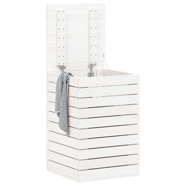 Laundry Basket White 44X44x66 Cm Solid Wood Pine Laundry Baskets & Hampers