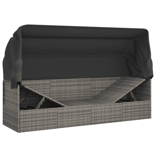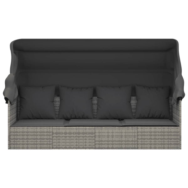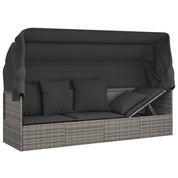 Outdoor Lounge Bed With Roof And Cushions Grey Poly Rattan Loungers