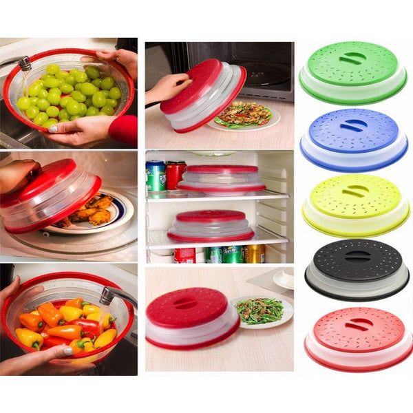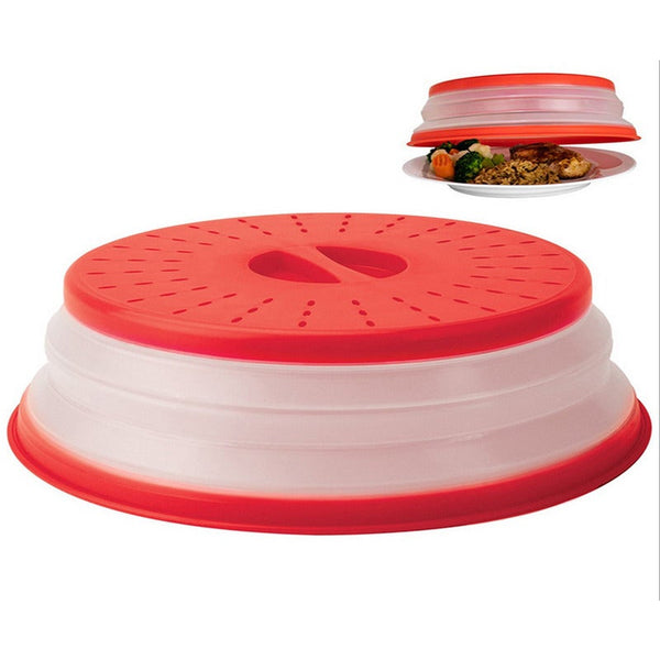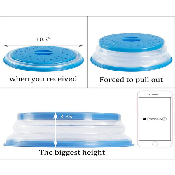 Easy Storage: Collapsible Cover Pops Up To 3 To Cover Tall Dishes Piles Of Food And Shallow Bowls. The Cover Collapses To 0. 98 For Easy Storage. Cover Can Also Be Used Flat To Cover Large Bowls To Prevent Splattering For A Cleaner Microwave.